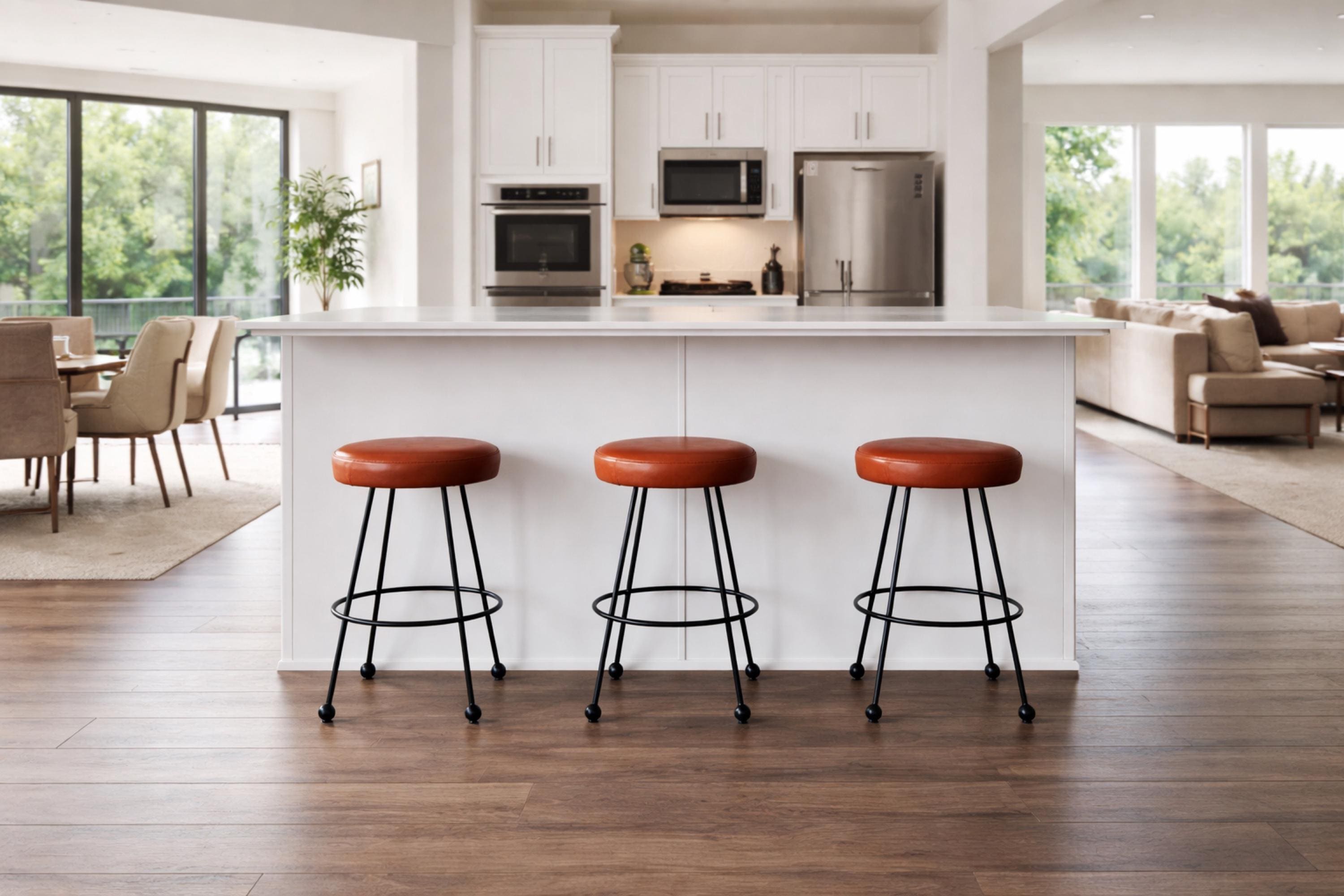 We are so in love with our custom counter stools! We specifically requested they have 4 legs, and needed the height customized to fit our counter. The leather is luxurious, and we couldn't recommend the stools and F&F Vintage more!