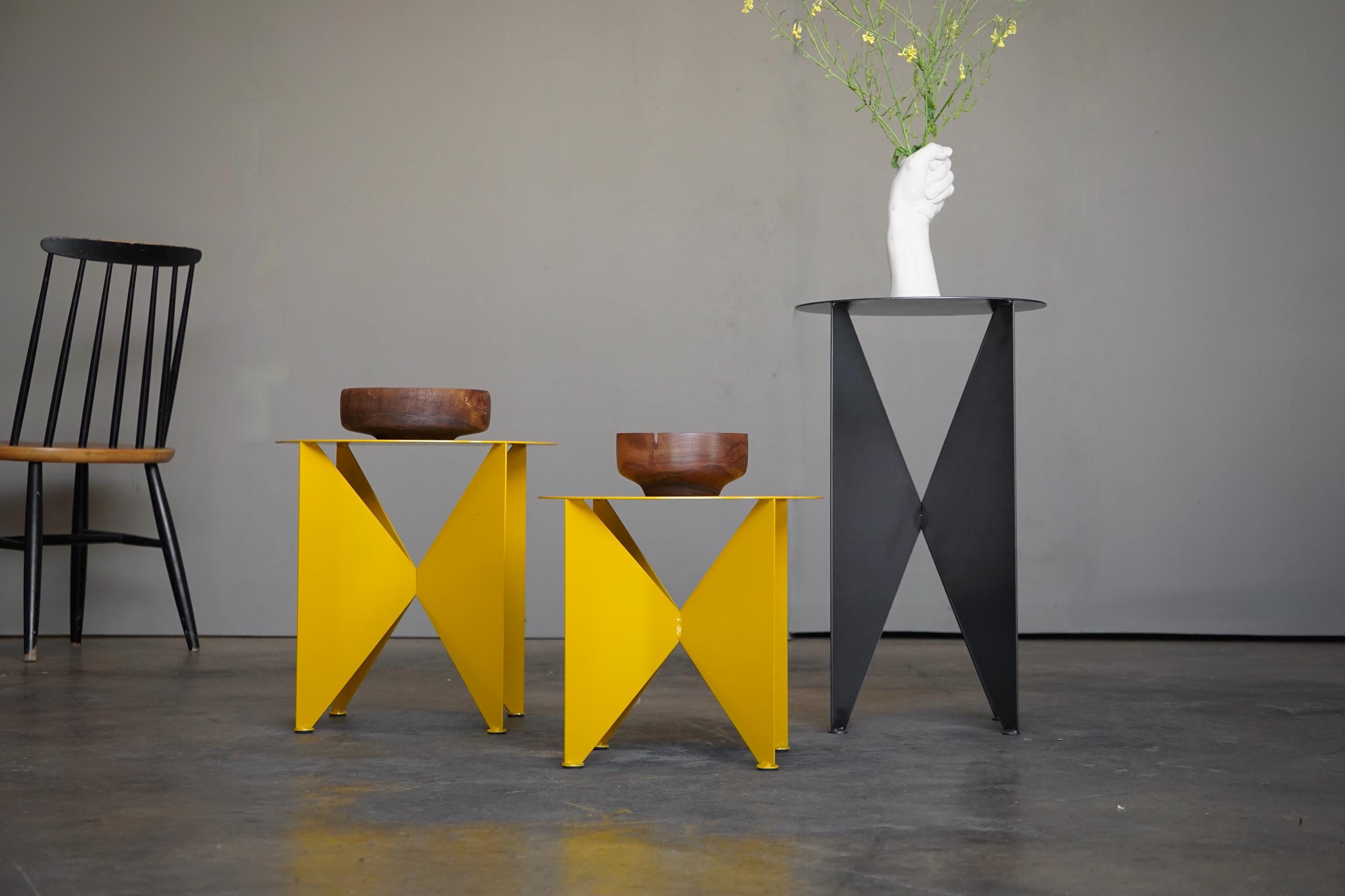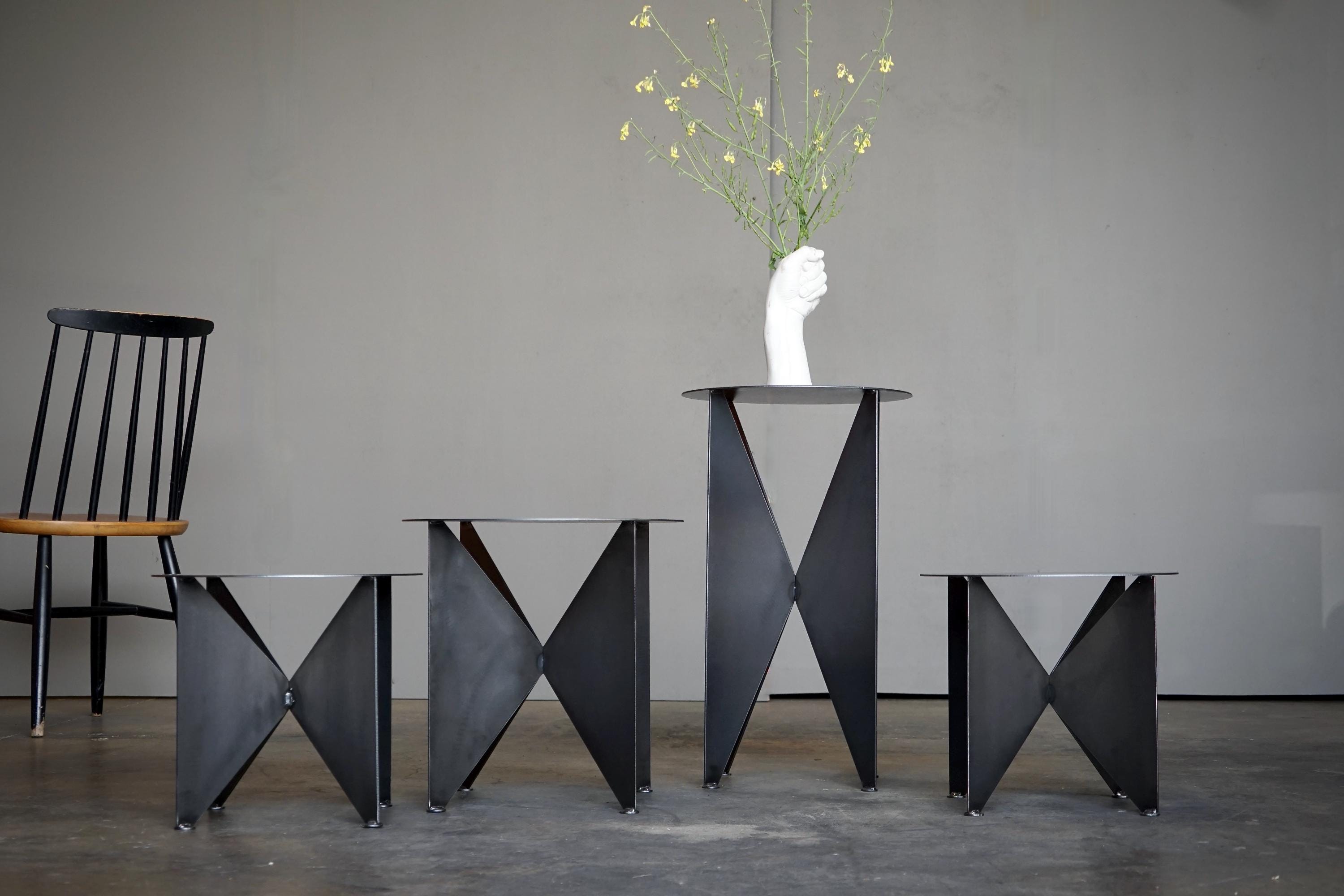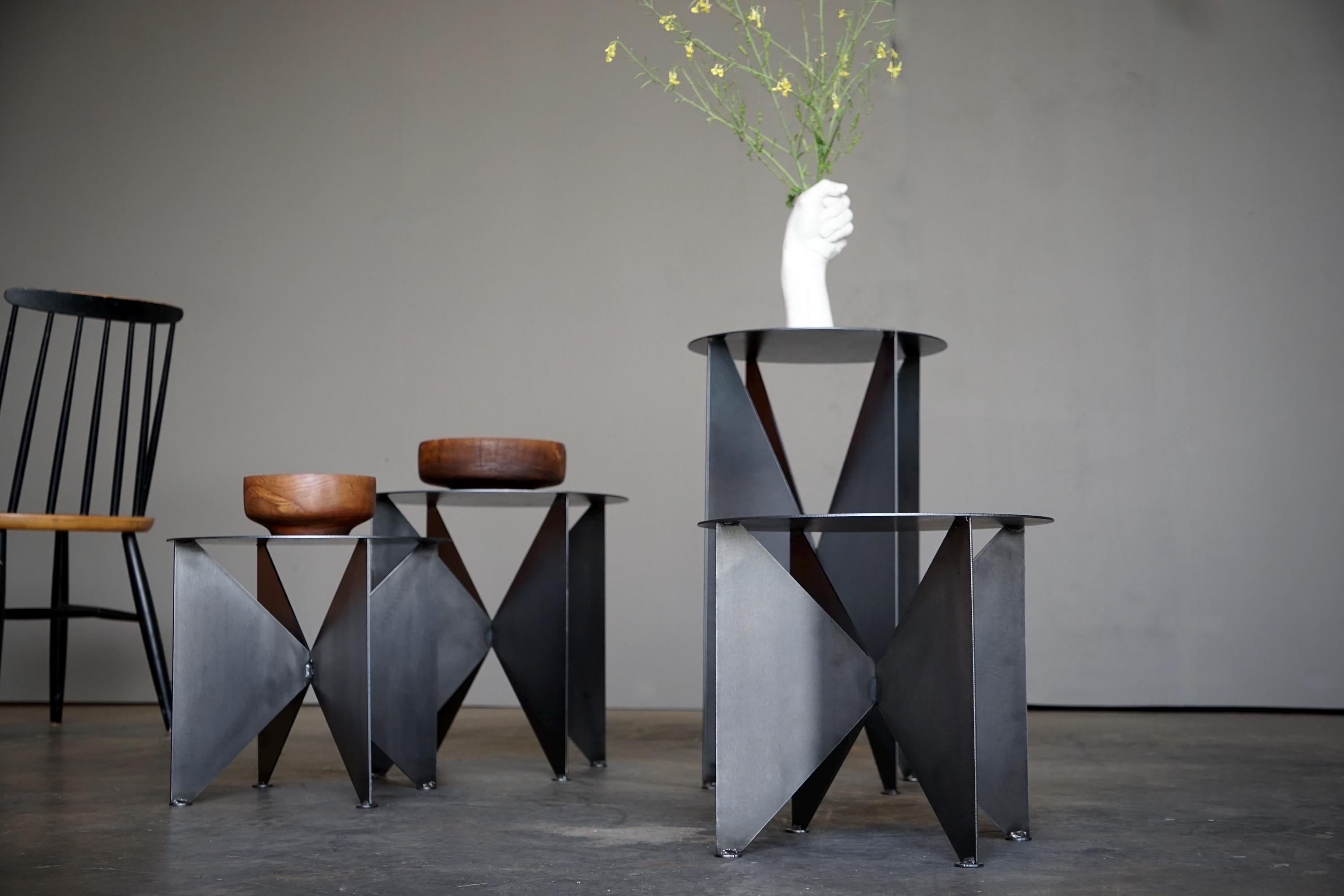 While minimal in appearance, these pieces are maximal in versatility. Perfect for inside, outside or poolside. Use them for a side table, plant stand, stool, etc. Each is proudly designed, hand cut, assembled and welded in Central California using American-made steel.