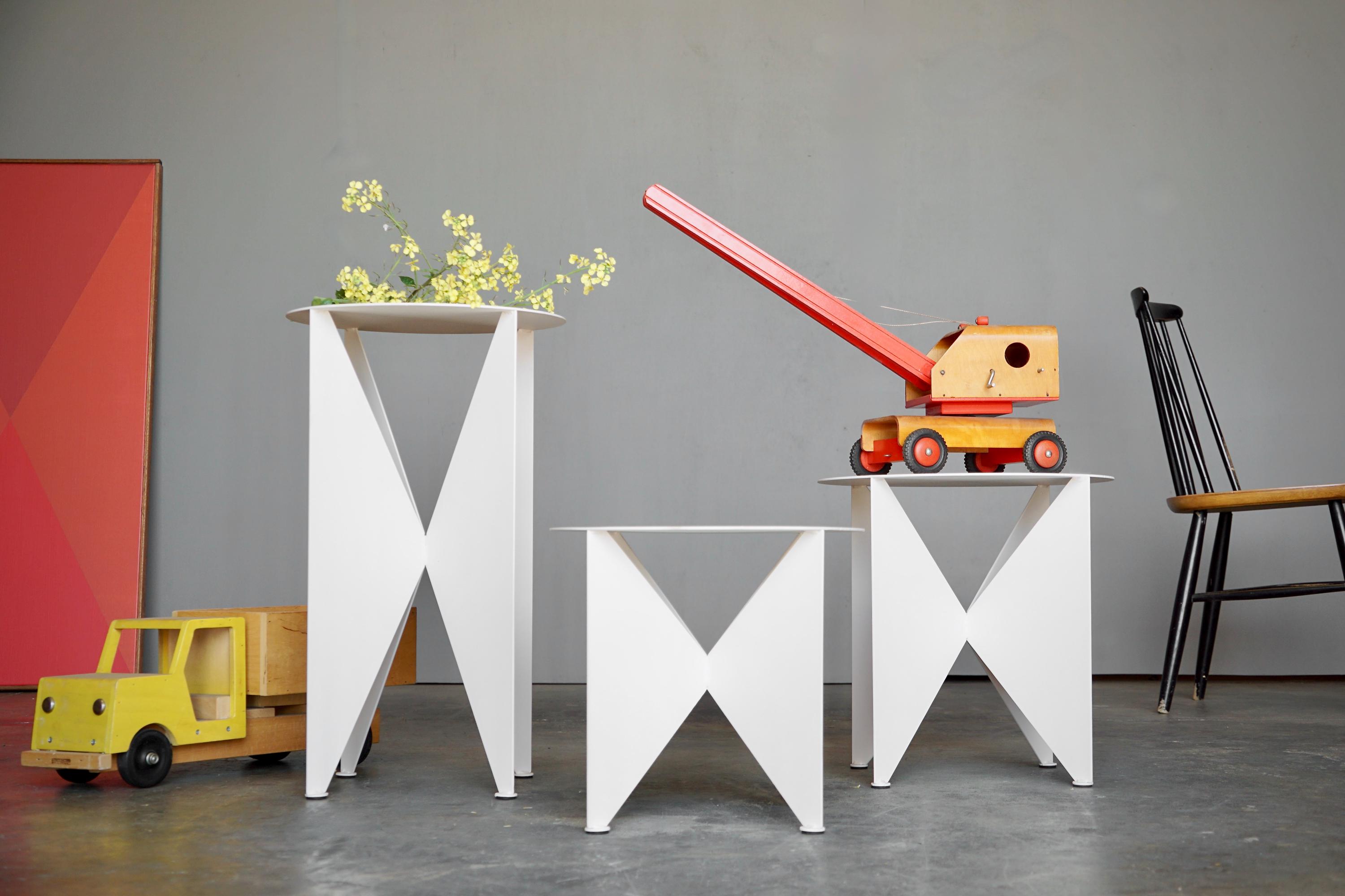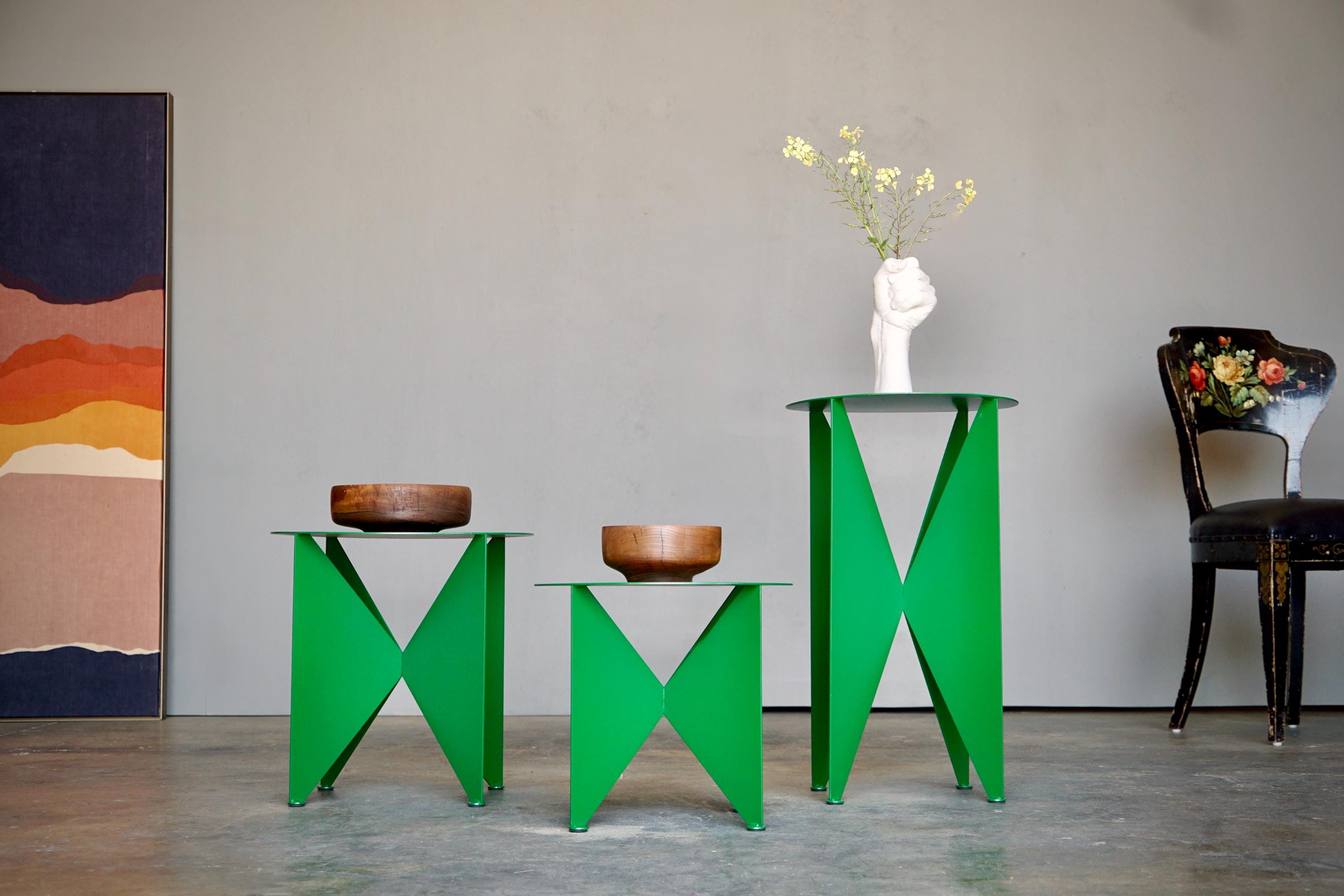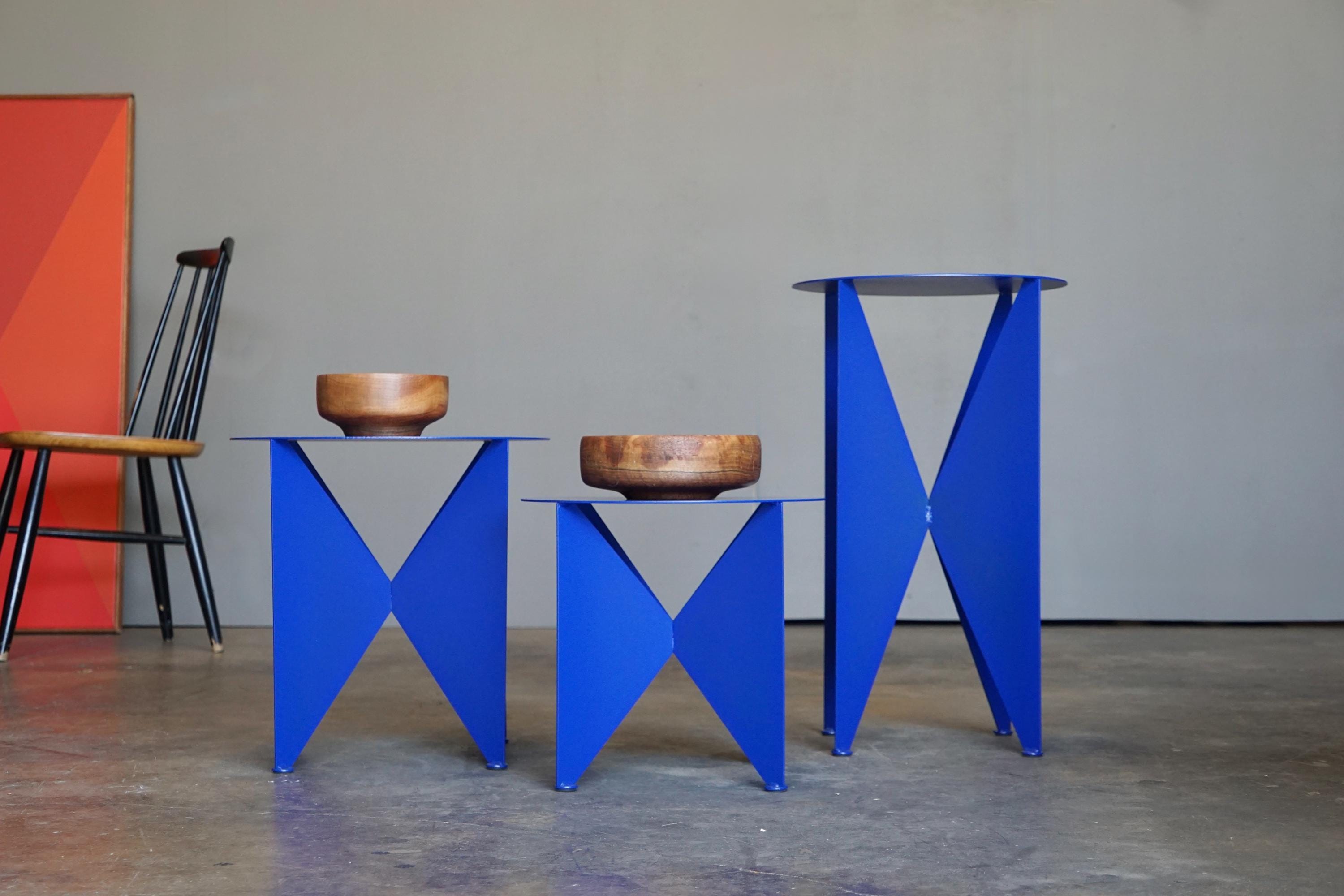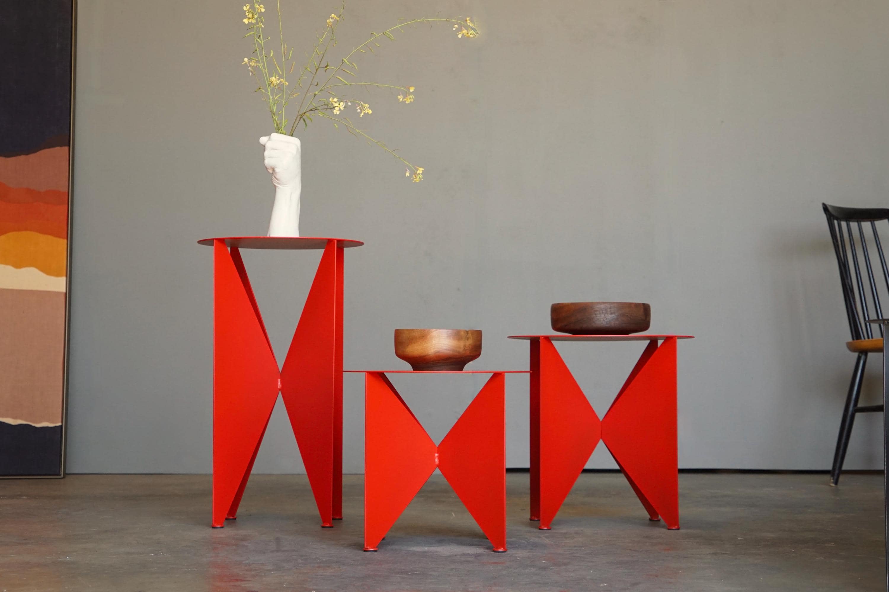 While minimal in appearance, these pieces are maximal in versatility. Perfect for inside, outside or poolside. Use them for a side table, plant stand, stool, etc. Each is proudly designed, hand cut, assembled and welded in Central California using American-made steel.
