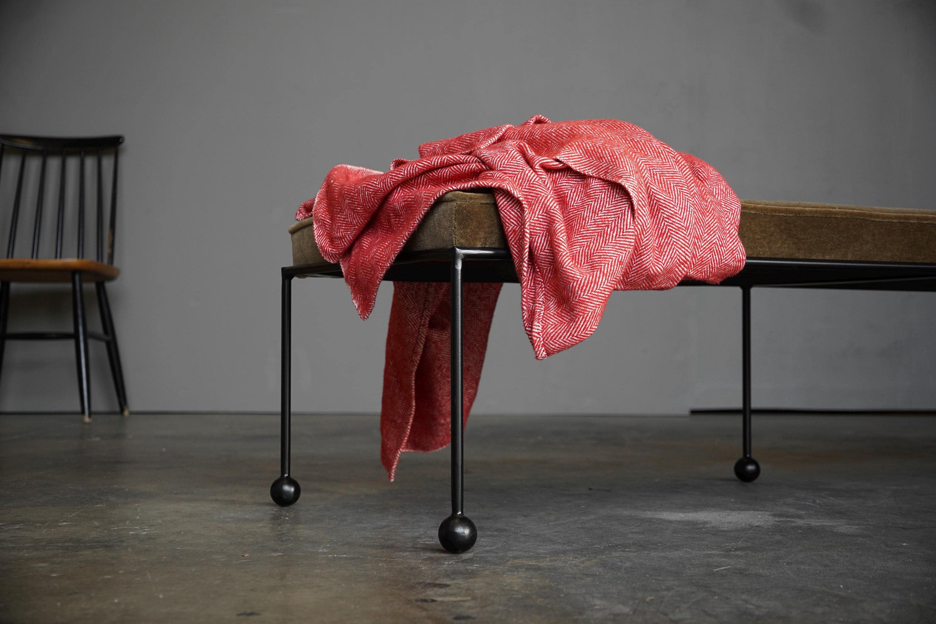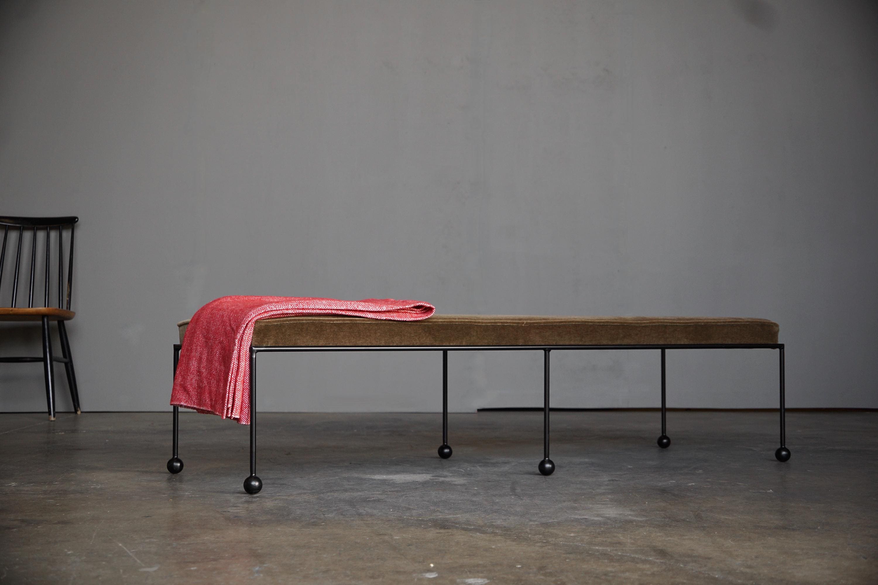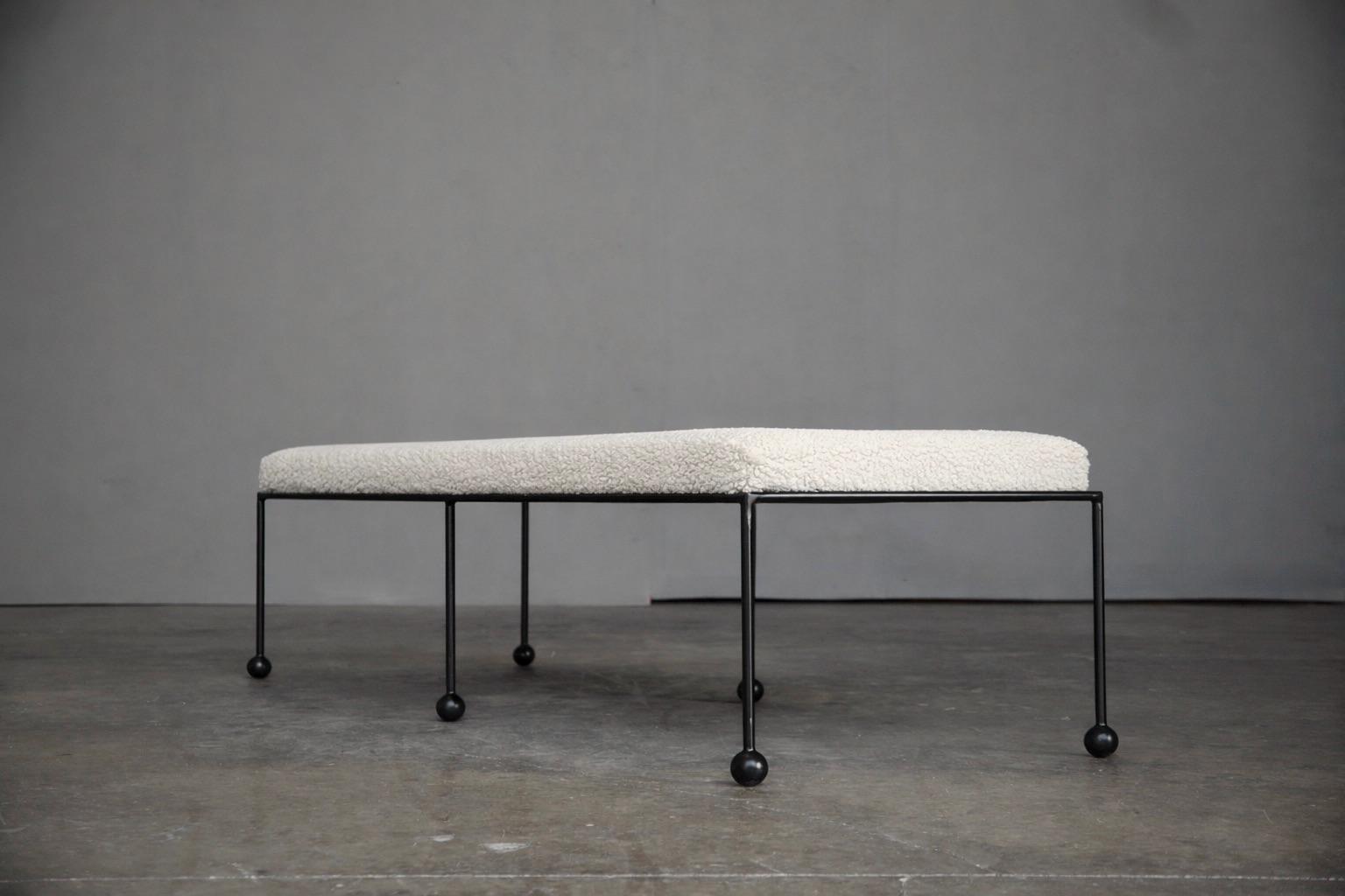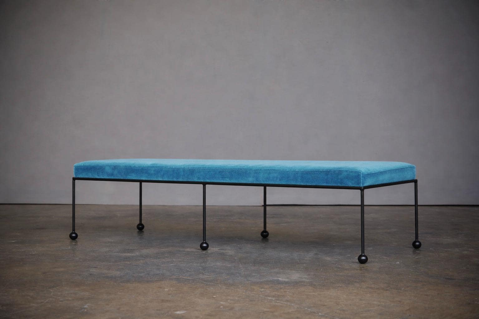 Inspired by 1950s French modernist design, each of our bench frames are hand cut, formed and welded from solid 1/2" powder-coated steel then topped with a high density foam and expertly upholstered seats in your choice of upholstery.