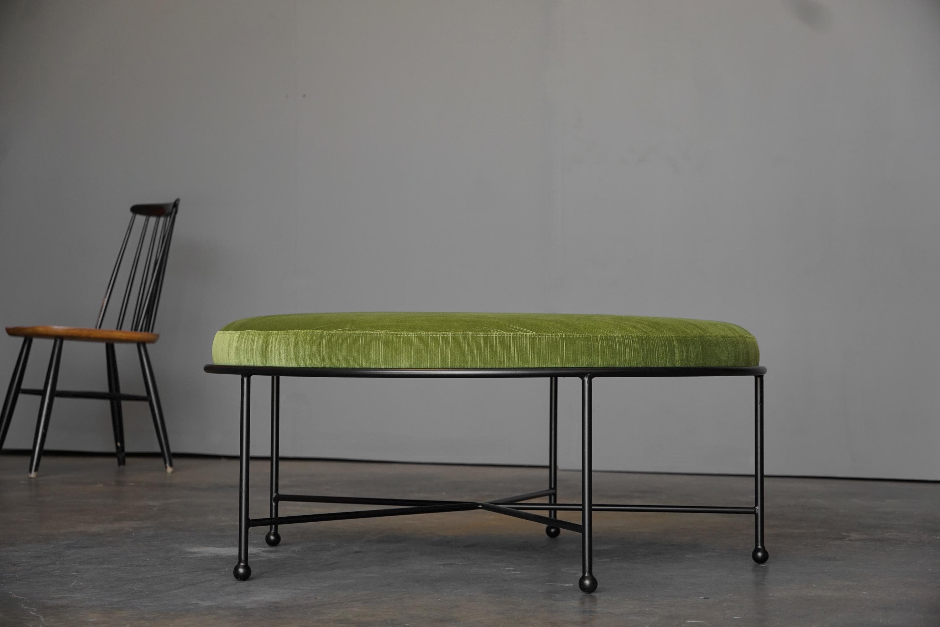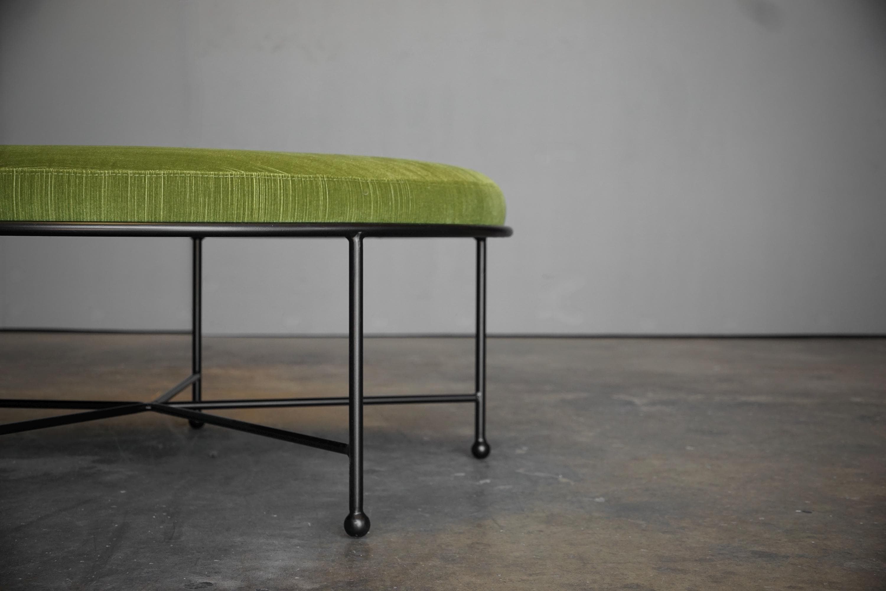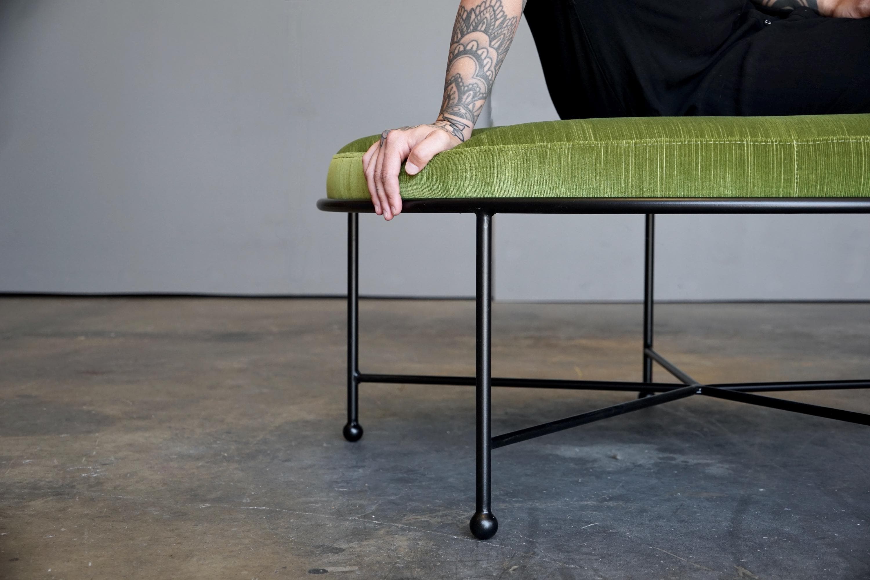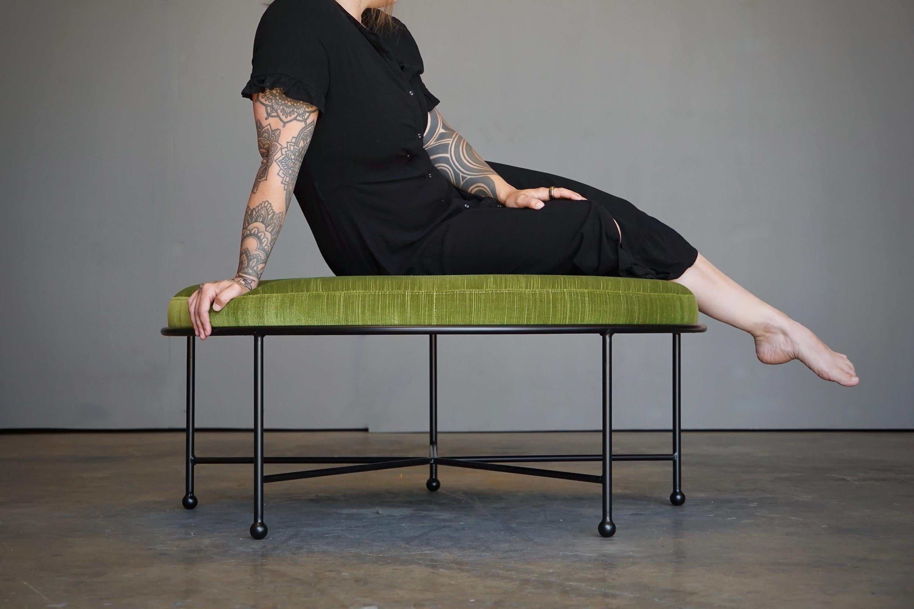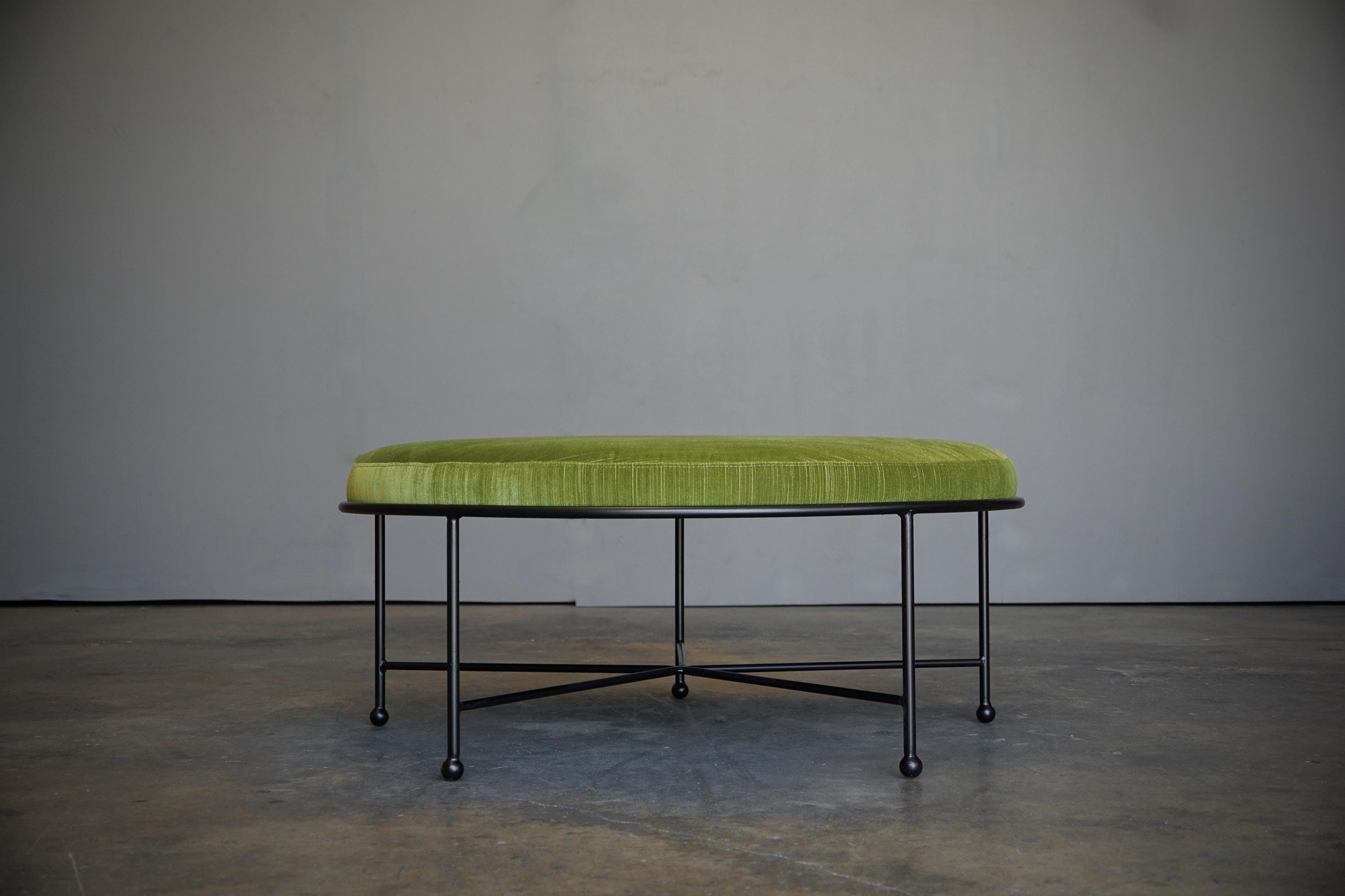 Inspired by 1950s French modernist design, each of our stool frames are hand cut, formed and welded from solid 5/8" powder-coated steel then topped with a high density foam and expertly upholstered seats in your choice of our standard or special order fabrics.