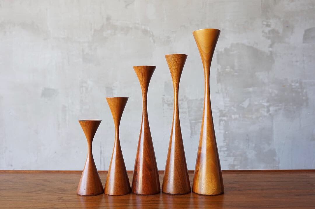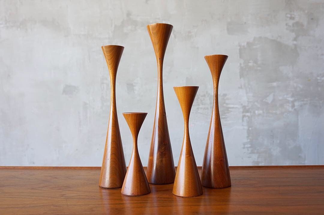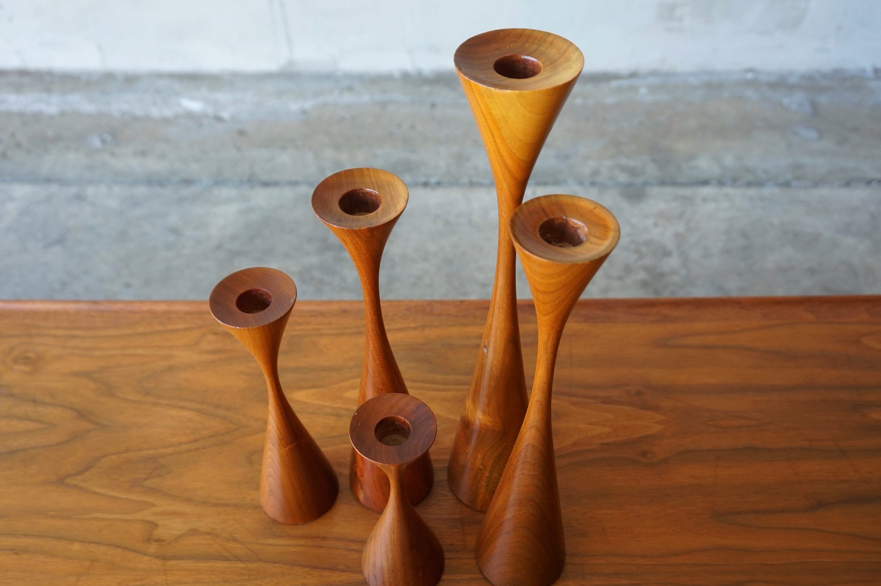Beautifully crafted set of of studio made walnut candlestick holders by noted wood worked, Rude Olosnik.