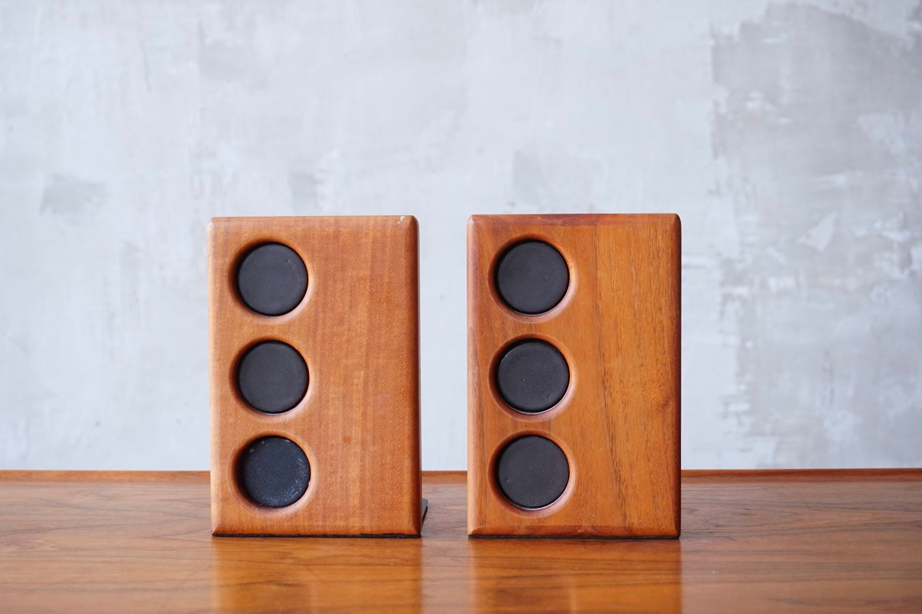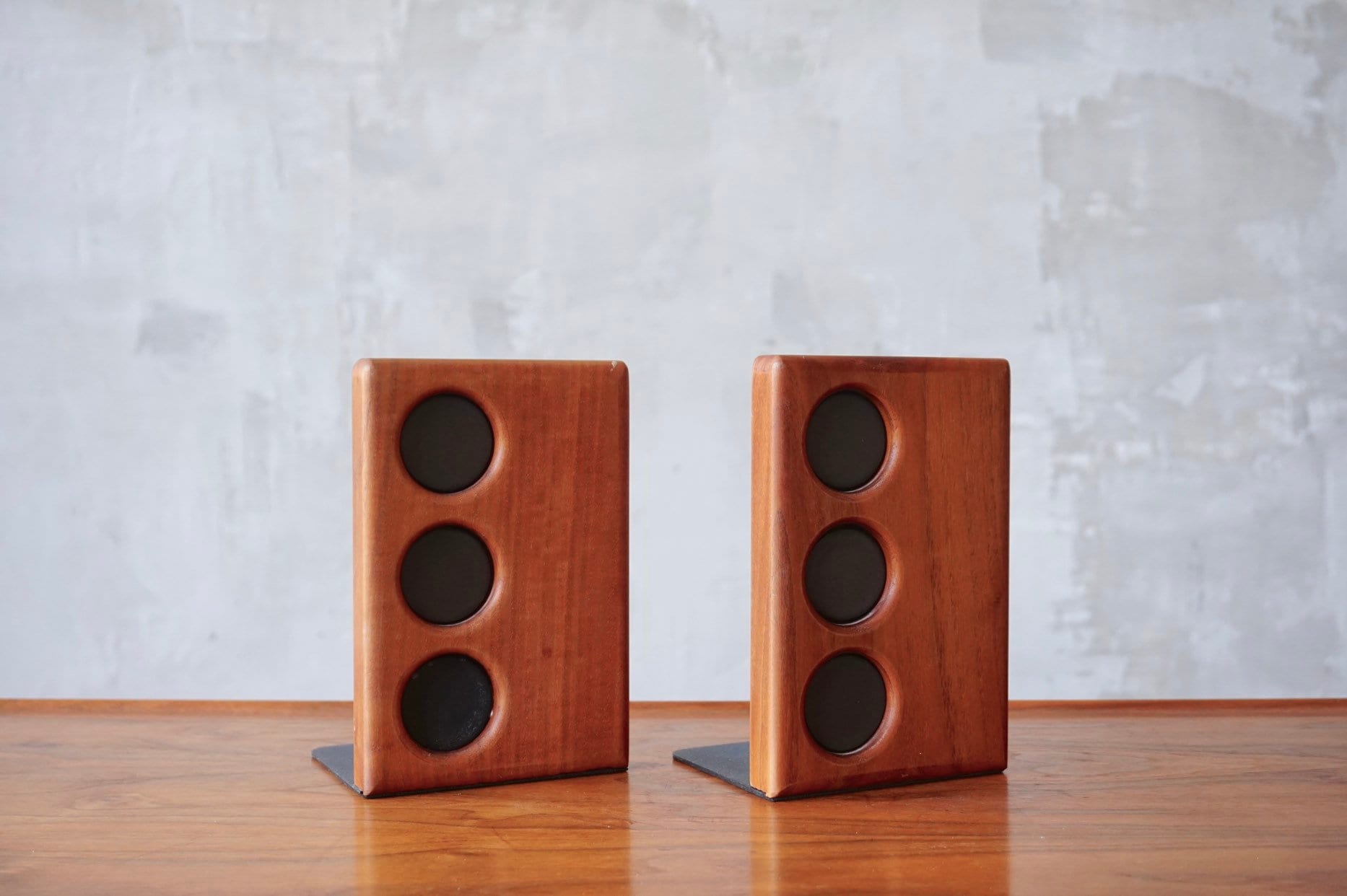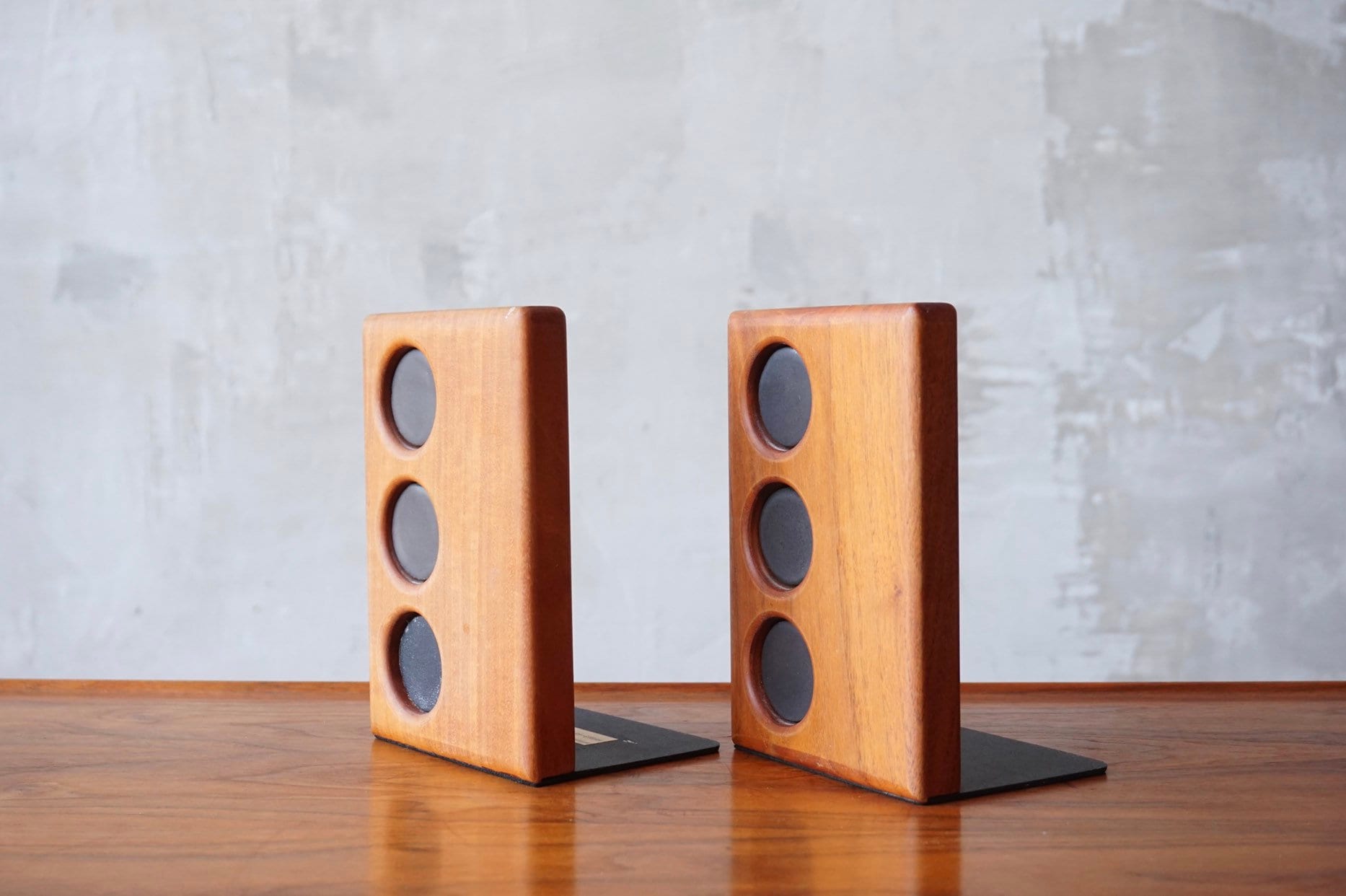 Beautiful pair of walnut bookends with matte black inset glazed tiles by Jane and Gordon Martz of Marshall Studios, c. 1960s.